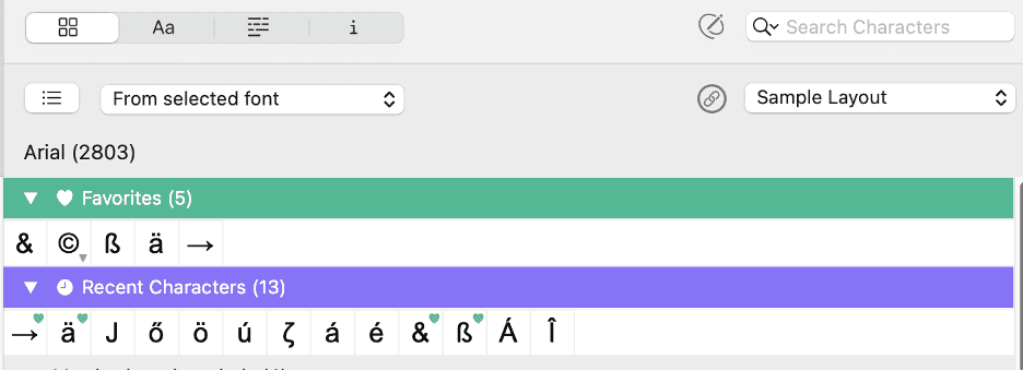 PopChar 会列出您最近使用的字符以便快速重复使用,并允许您标记常用字符,确保您最常用的符号始终触手可及。