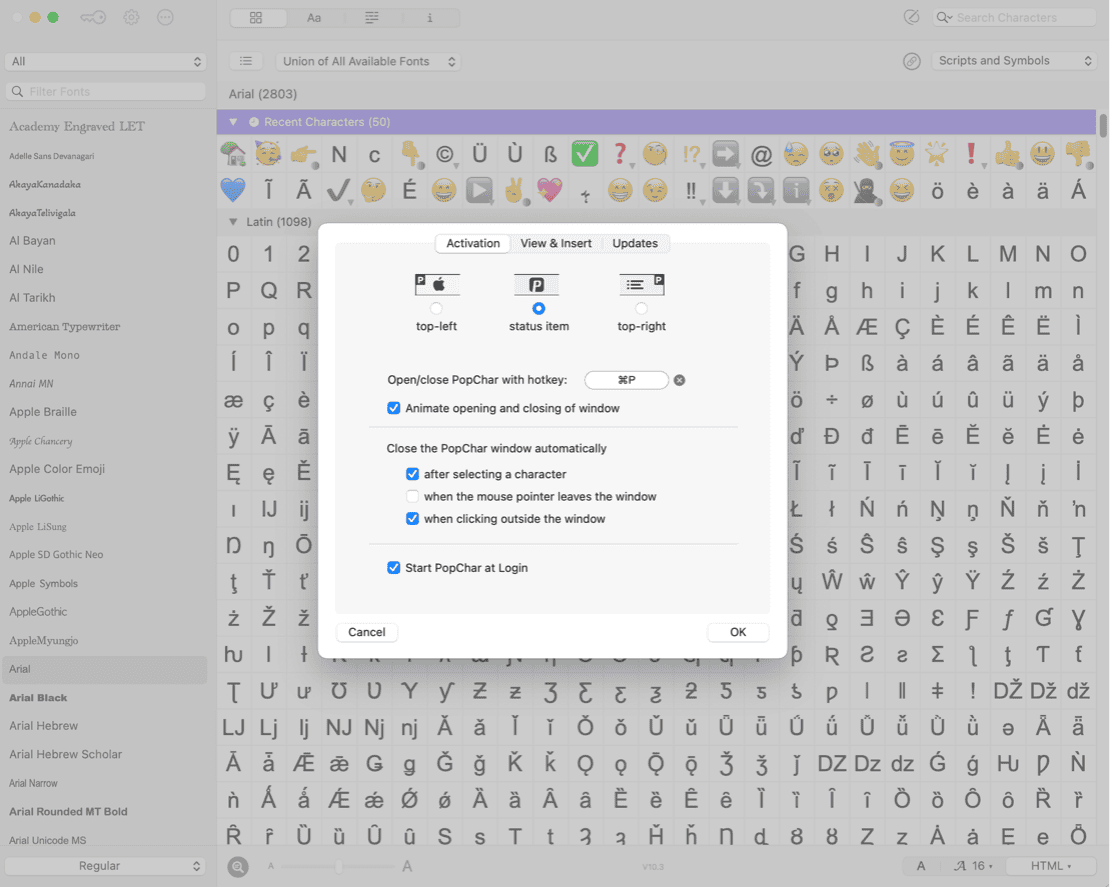 PopChar 提供了丰富的自定义选项,让你可以根据自己的需求和使用习惯进行个性化设置: